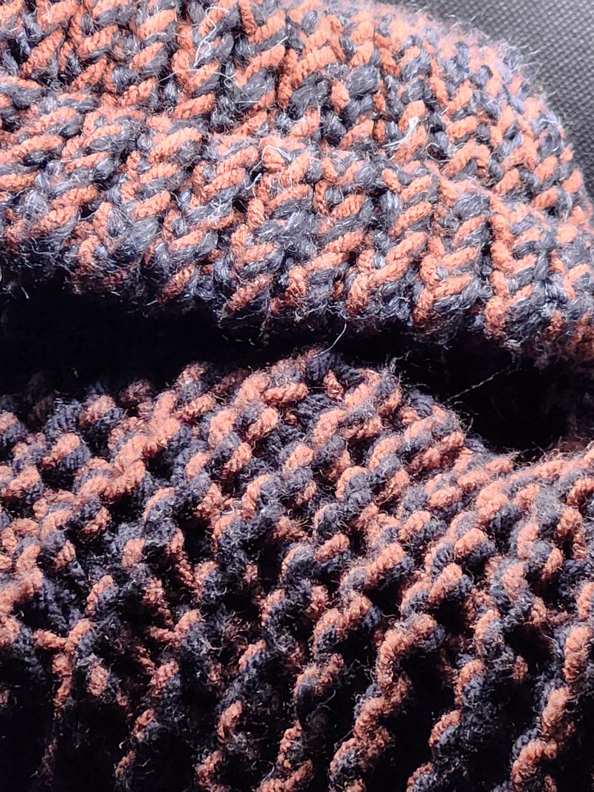 Hand Knit Brown Black Hat Scarf Set