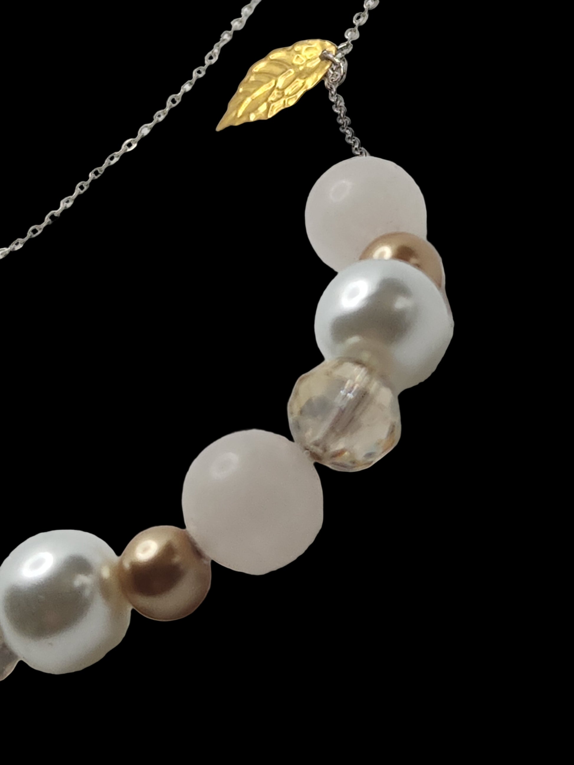 Genuine quartz crystal, smoky glass, ab crystals and imitation pearls set on a silver 30 inch chain
